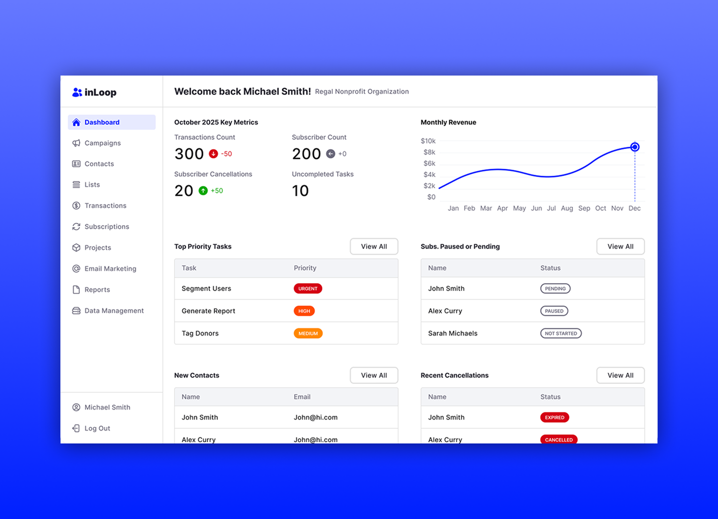 Nonprofits need to manage their contacts, run marketing campaigns, and then document the results.