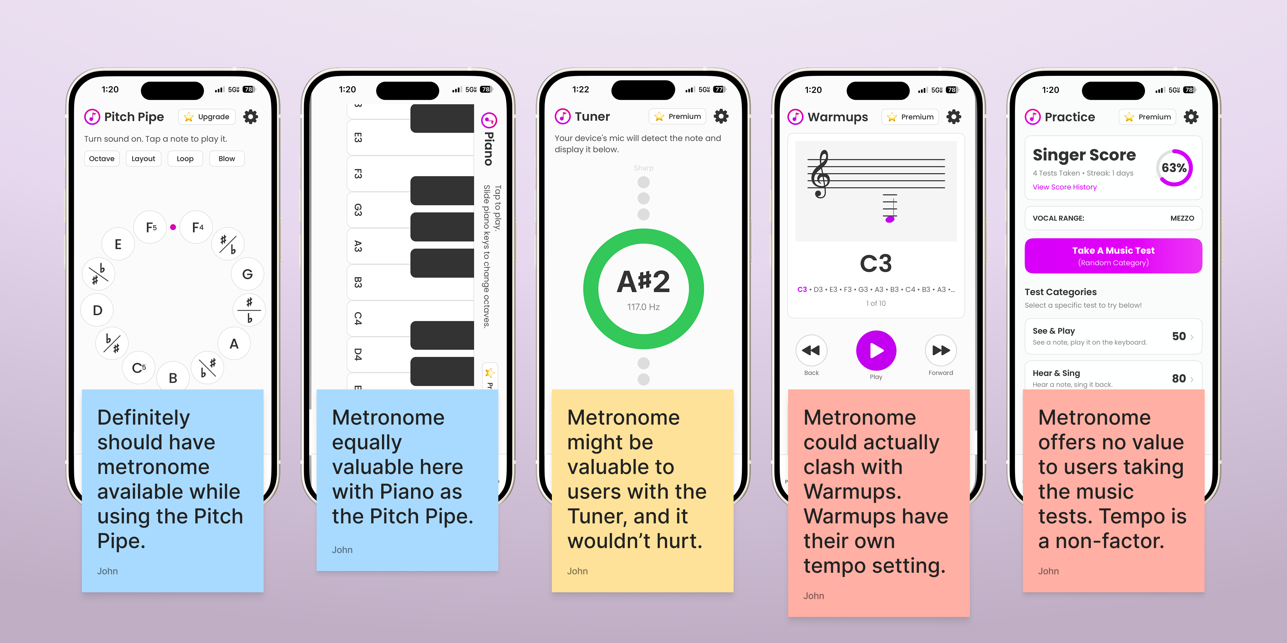 Designed, built, and shipped a metronome for singers who were already using multiple features within an app.